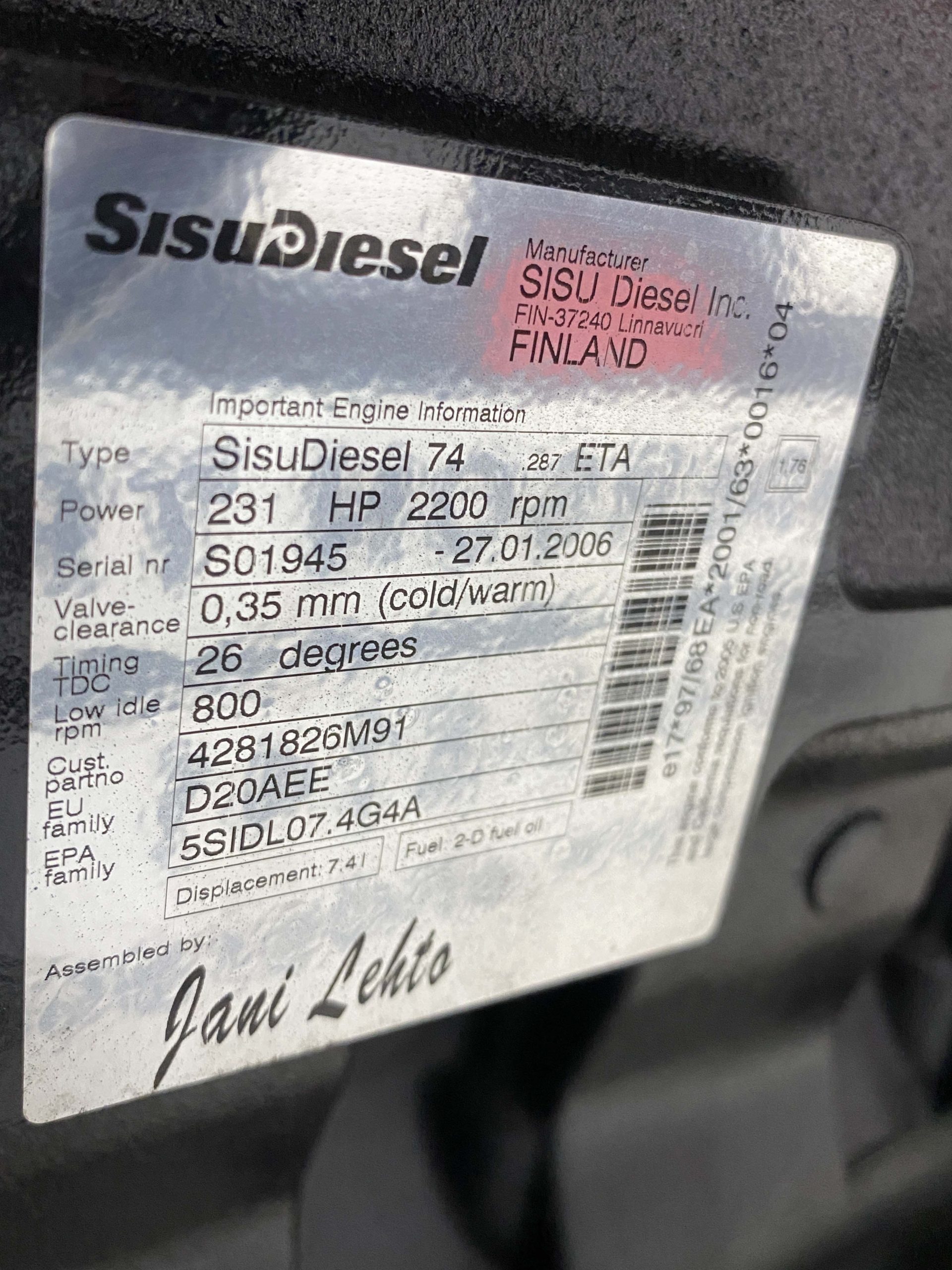 SISU DIESEL ENGINE 7.4L